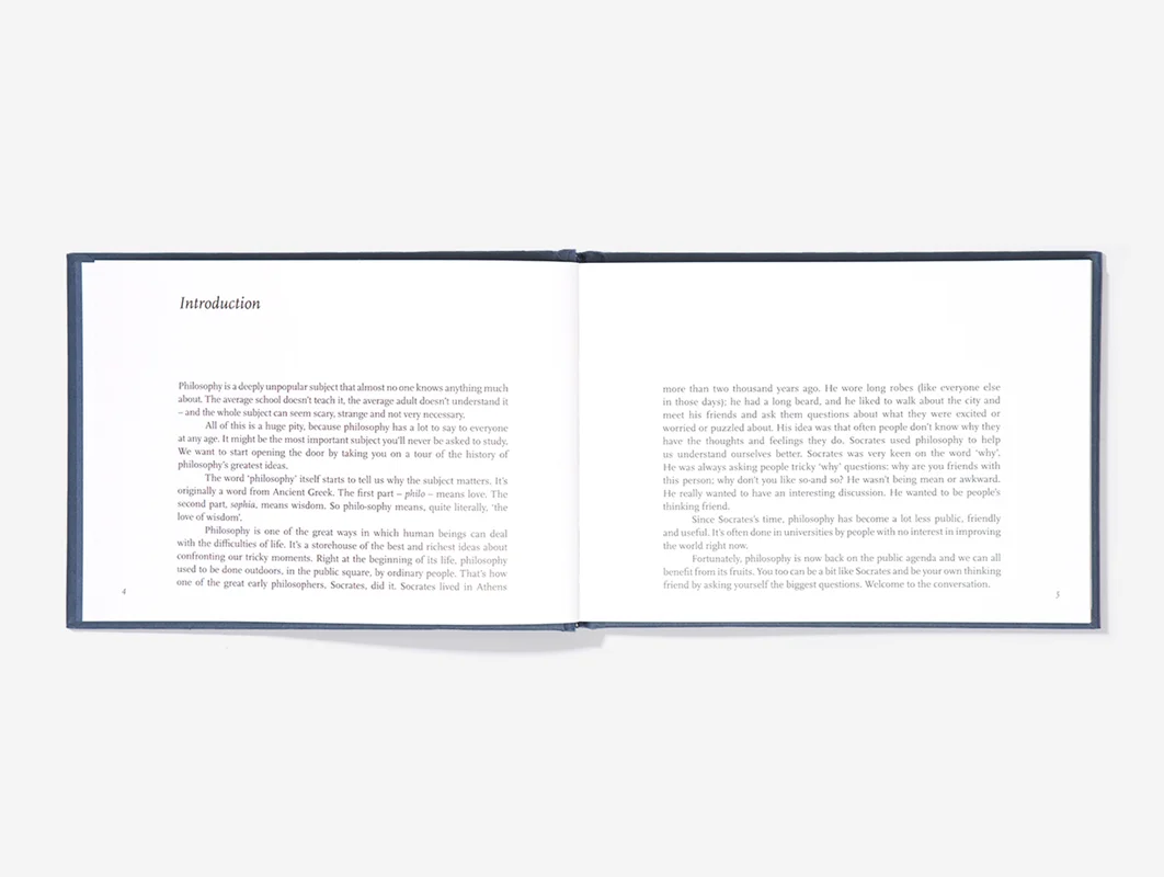 کلمه "فلسفه" به ما اشاره می کند که چرا موضوع مهم است. در یونان باستان، «فیلو» (عشق) و «سوفیا» (حکمت) نشان می دهد که فلسفه به معنای واقعی کلمه یک رشته برای کسانی است که «عاشق خرد» هستند. در اینجا ضروریترین ایدههای آن نجات یافته، برجستهشده و الهامبخش ارائه شدهاند تا بتوانند اثرات مفید خود را در جایی که بیشتر مورد نیاز است اعمال کنند: در زندگی روزمره ما.